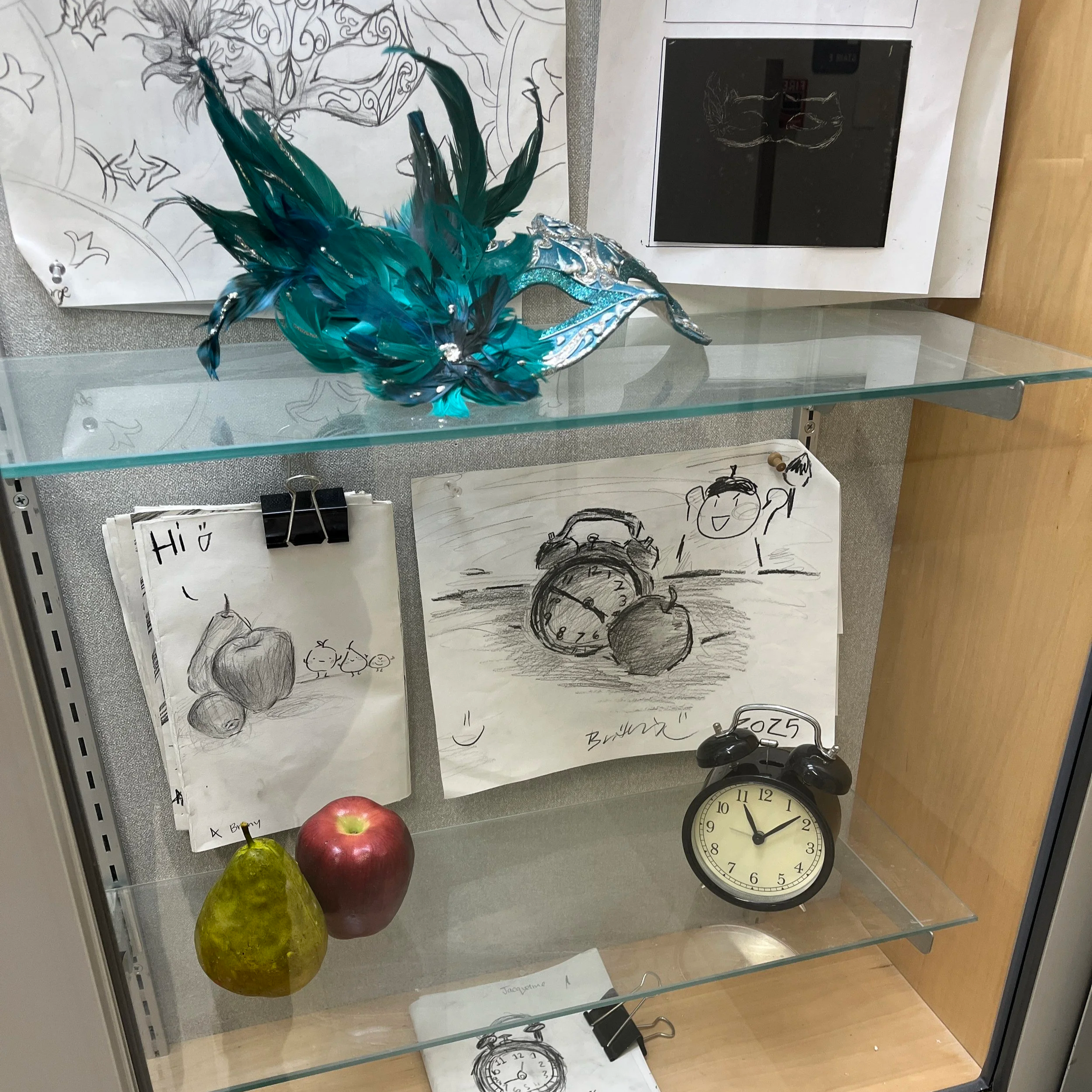 It was fun to display larger drawings and parts of their sketchbooks. I included the objects they drew so viewers could see how they worked their way up from simple to complex shapes.
